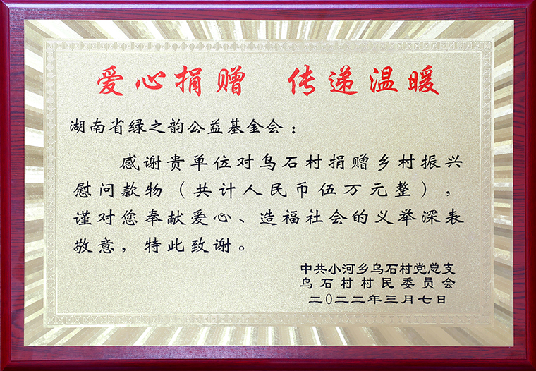 從2016年綠之韻第一次走進(jìn)小河鄉(xiāng)開展愛心助學(xué)捐贈(zèng)活動(dòng),到2017年與瀏陽市小河鄉(xiāng)簽訂三年定點(diǎn)精準(zhǔn)幫扶協(xié)議,綠之韻每年走進(jìn)瀏陽小河鄉(xiāng)烏石村開展農(nóng)產(chǎn)品直購會(huì)等精準(zhǔn)幫扶活動(dòng),我們見證了小河鄉(xiāng)烏石村的改變和發(fā)展,共同描繪了“山青水綠鄉(xiāng)民和美”的美麗鄉(xiāng)村畫卷。為進(jìn)一步鞏固脫貧攻堅(jiān)成果同鄉(xiāng)村振興有效銜接,幫助解決烏石村當(dāng)?shù)厝罕娚?、生產(chǎn)實(shí)際困難,2022年3月7日,綠之韻公益基金會(huì)與小河鄉(xiāng)烏石村村委共建慈善愛心驛站,創(chuàng)新企業(yè)公益幫扶新模式,引領(lǐng)鄉(xiāng)村振興再啟新程。