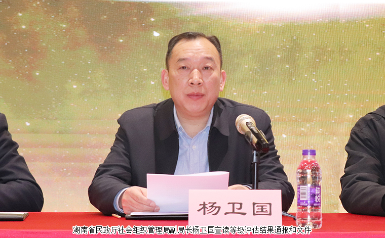 授牌大會由湖南省民政廳社會組織管理局副局長陳群主持。原湖南省民政廳副廳長、一級巡視員、湖南省社會組織促進會會長鄧磊,湖南省民政廳社會組織管理局副局長楊衛(wèi)國、歐策、鄂立輝出席會議。會上,湖南省民政廳社會組織管理局副局長楊衛(wèi)國宣讀等級評估結(jié)果通報和文件。湖南省民政廳社會組織管理局副局長鄂立輝向綠之韻公益基金會頒授“4A級社會組織”牌匾和證書。