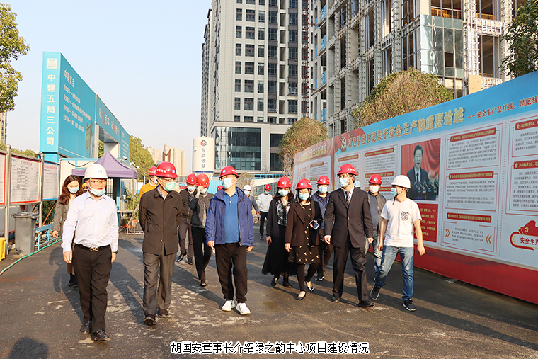 參觀調(diào)研期間,胡國安董事長介紹綠之韻中心項(xiàng)目建設(shè)情況。綠之韻集團(tuán)投資建設(shè)的綠之韻中心項(xiàng)目及配套物業(yè)總面積逾12萬平米,總投資逾12億元人民幣。項(xiàng)目由一棟萬豪五星級酒店和一棟甲級寫字樓及裙樓組成,目前已進(jìn)入全面裝修階段。綠之韻中心項(xiàng)目建成后,將新增長沙市勞動就業(yè)約2000人,為長沙市每年創(chuàng)造GDP逾3億元人民幣,為雨花區(qū)每年創(chuàng)造利稅逾3000萬元人民幣,同時(shí)作為雨花區(qū)高端商務(wù)會議型酒店,更加完善了高橋商圈商業(yè)配套,為瀏陽河風(fēng)光帶增添了一個(gè)新的基礎(chǔ)設(shè)施,為雨花區(qū)廣招天下商客,進(jìn)一步擴(kuò)大對外開放打造了一個(gè)新的平臺和一張靚麗的名片。