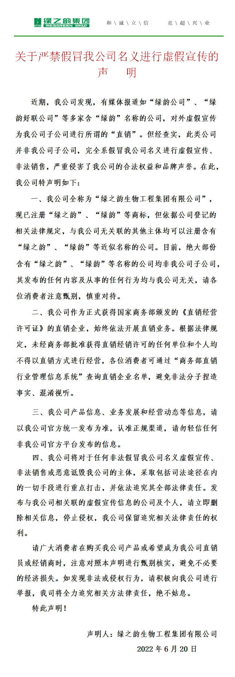 關(guān)于嚴(yán)禁假冒我公司名義進(jìn)行虛假宣傳的聲明