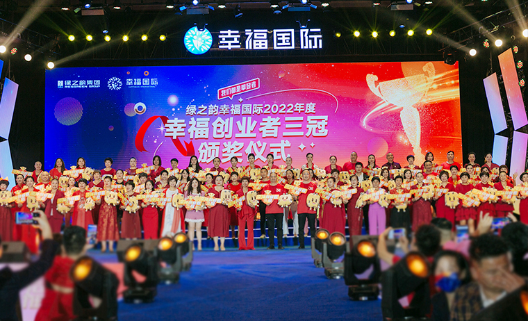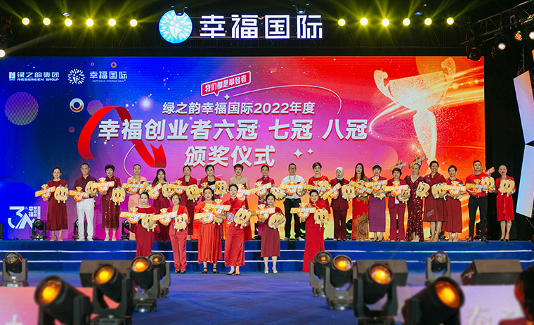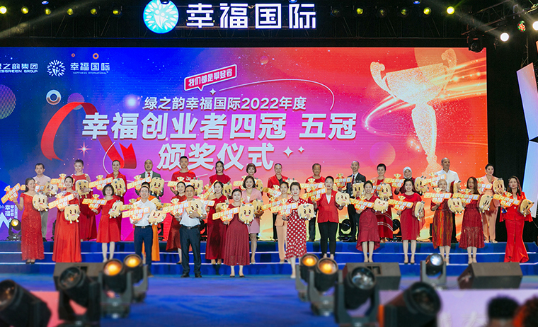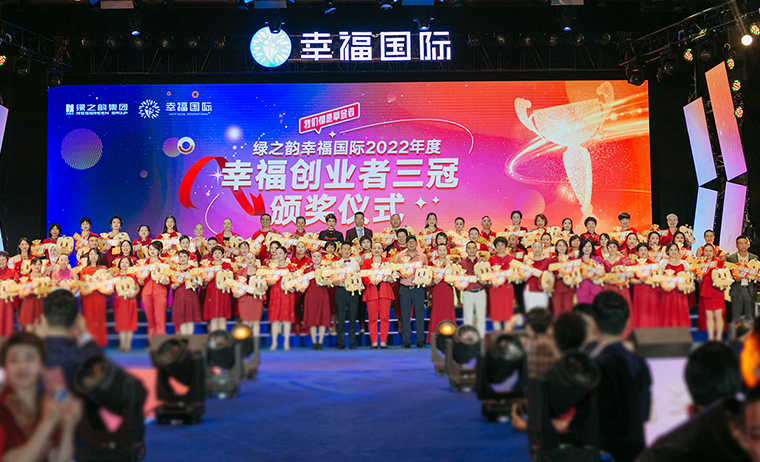2022年6月23日,幸福攀登者·綠之韻幸福國際三周年慶典在集團總部國際會議中心盛大舉行。綠之韻集團董事長胡國安,董事、總裁勞嘉,副總裁胡均安,副總裁、幸福導(dǎo)師夏運良及高管團隊,與來自全國各地的1000余名綠之韻家人匯聚一堂,共襄盛舉。大會全程通過PC、移動端在線互動視頻直播,線上近60000人次共同收看和分享了大會盛況。