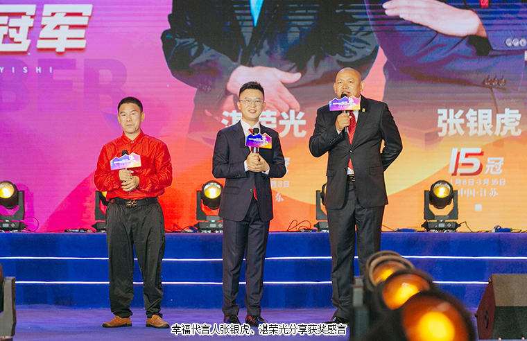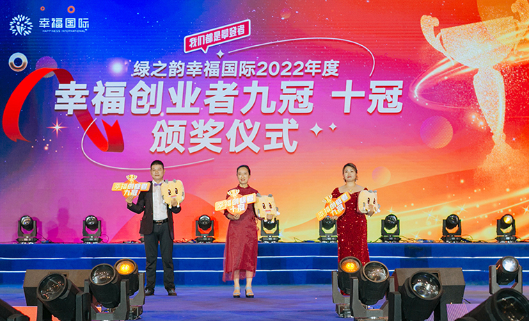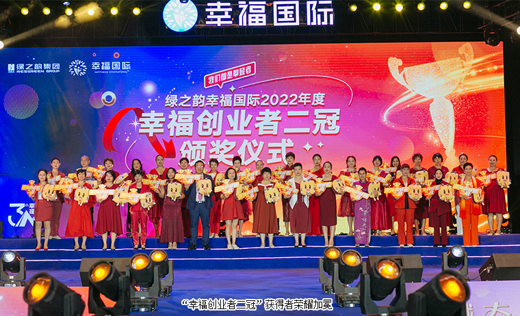 每個人心中都有一個關(guān)于攀登的理由,而他們的理由,是不想再庸碌的活著。在現(xiàn)場千余名綠之韻幸福國際家人們的見證下,大會舉行了盛大的頒獎儀式。百余名“幸福創(chuàng)業(yè)者”身著盛裝,在星光閃爍中走上舞臺,共享榮耀時刻。綠之韻集團董事、總裁勞嘉為幸福創(chuàng)業(yè)者銷售冠軍張銀虎、湛榮光頒獎。幸福代言人張銀虎、湛榮光分享獲獎感言。