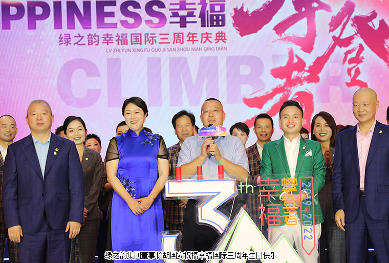 會議最后,在現(xiàn)場最為熱烈的掌聲中,綠之韻集團董事長胡國安、董事總裁勞嘉、副總裁、幸福導(dǎo)師夏運良與集團高管、幸福國際運營團隊和所有市場核心骨干共同上臺為綠之韻幸福國際三周年生日舉行了盛大的慶生儀式。胡國安董事長向綠之韻幸福國際的三歲生日送上了真摯的祝福:三年來,每天晨起最讓我幸福的一件事情是為幸福代言人發(fā)送的朋友圈動態(tài)點贊。今天我最幸福的事情就是來到幸福國際三周年慶典的現(xiàn)場。我這一生最開心、最快樂、最幸福的事情就是認(rèn)識了一群積極向上、努力學(xué)習(xí)、不斷追求幸福的幸福代言人。三年來,所有的幸福代言人用各種方式在傳播著公司的企業(yè)文化,傳承中華五千年養(yǎng)生文化,通過各種方式積極推動科技讓中醫(yī)養(yǎng)生走進千家萬戶的理念,為你們點贊!向所有的幸福代言人致敬!向所有臺前幕后的工作人員致敬!向所有的幸福攀登者致敬!未來可期,幸??傻茫T妇G之韻幸福國際三周年慶典圓滿成功。
