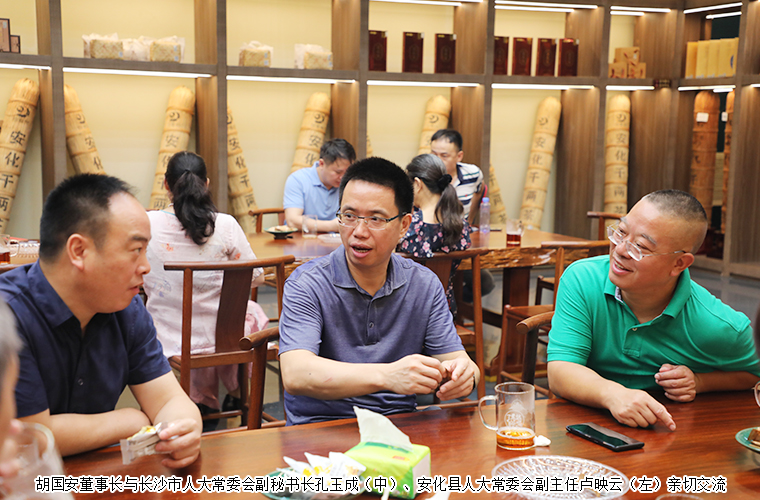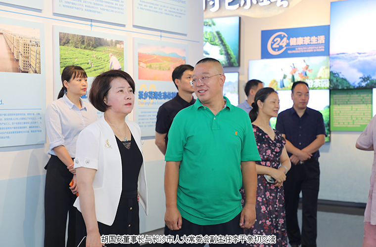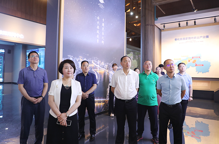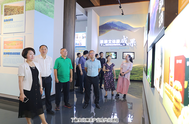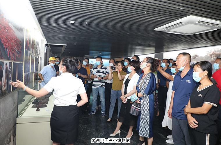 7月6日,考察團(tuán)一行來到了安化縣國家現(xiàn)代農(nóng)業(yè)產(chǎn)業(yè)園成果展示館。在講解員的帶領(lǐng)下,考察團(tuán)從“產(chǎn)業(yè)發(fā)展”“科研創(chuàng)新”“綠色生態(tài)”“茶旅文康”“品牌建設(shè)”“脫貧致富”六大園區(qū)創(chuàng)建成果及“現(xiàn)代茶園”“現(xiàn)代智造”“現(xiàn)代茶倉”“現(xiàn)代產(chǎn)品”“現(xiàn)代營銷”“現(xiàn)代服務(wù)”六個(gè)方面深入了解了安化黑茶產(chǎn)業(yè)的現(xiàn)代化進(jìn)程。中國黑茶博物館緊鄰安化黃沙坪古茶市。該館主樓9層,高39米,裙樓兩層,采用中國傳統(tǒng)樓閣式建筑風(fēng)格,工藝精湛,造型宏偉,是融展示收藏和觀光旅游于一體的標(biāo)志性建筑,是全國唯一展示黑茶及其文化的專題博物館。安化黑博物館既是展示安化文化和形象的重要窗口,也已成為安化一張靚麗的城市名片。