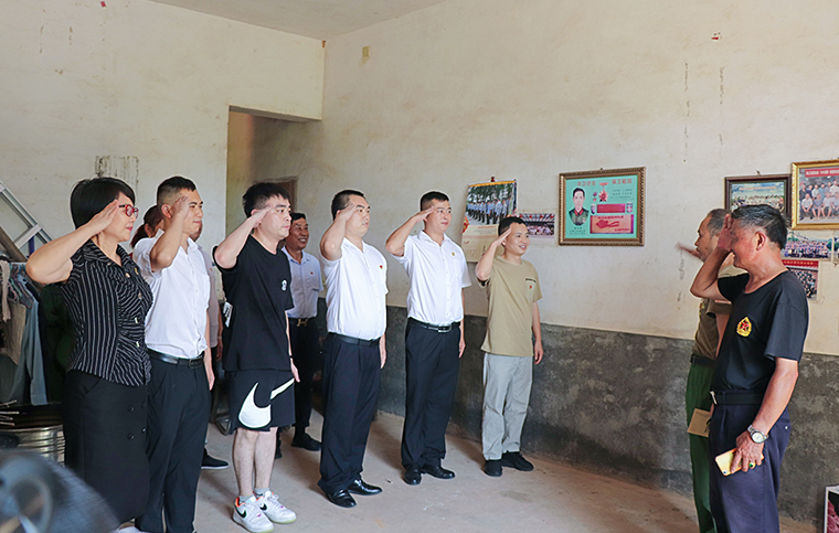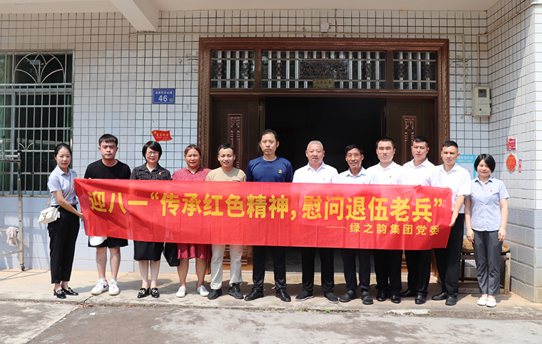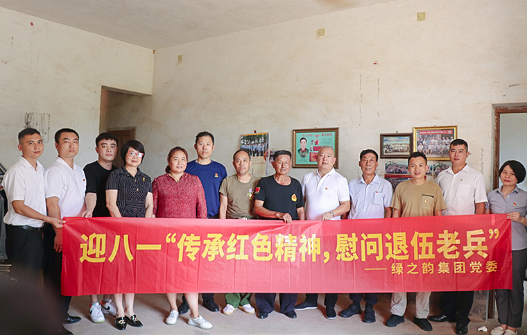 為紀念中國人民解放軍建軍95周年,2022年8月1日,綠之韻集團黨委組織開展了迎八一“傳承紅色精神·慰問退伍老兵”主題黨日活動。綠之韻集團副總裁胡均安、夏運良,黨委書記劉云、黨委副書記許達仲帶領著十余名退伍軍人前往綠之韻集團鄉(xiāng)村振興定點幫扶和對口支援點——瀏陽市北盛鎮(zhèn)邊洲村,向村里的退伍老兵送上慰問金和濃濃的節(jié)日祝福。