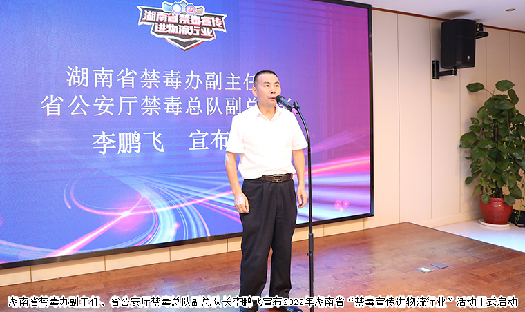 啟動儀式由湖南省物流與采購聯(lián)合會副會長兼秘書長申建華主持。會上,湖南省物流與采購聯(lián)合會會長尹國杰為活動致辭。湖南省禁毒協(xié)會會長董瑛致辭。她表示,隨著禁毒嚴打的不斷深入和新冠疫情常態(tài)化,線上交易線下交貨、人貨分離、“互聯(lián)網(wǎng)+物流寄遞”已經(jīng)成為新時期毒品販賣的主要手段,物流行業(yè)成為禁毒工作的重要戰(zhàn)場。因此,為全面筑牢物流行業(yè)禁毒防護墻,從源頭上加強物流企業(yè)涉毒防范,加強物流行業(yè)禁毒宣傳教育意義重大。隨后,湖南省公安廳禁毒總隊二級高級警長、預(yù)防教育支隊支隊長彭國清介紹湖南省“禁毒宣傳進物流行業(yè)”活動內(nèi)容。湖南省禁毒辦副主任、省公安廳禁毒總隊副總隊長李鵬飛宣布2022年湖南省“禁毒宣傳進物流行業(yè)”活動正式啟動。