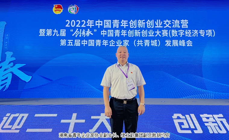 數(shù)字經(jīng)濟(jì)賦能新藍(lán)海,創(chuàng)新創(chuàng)業(yè)成就新未來。8月22—24日,2022中國青年創(chuàng)新創(chuàng)業(yè)交流營暨第五屆中國青年企業(yè)家(共青城)發(fā)展峰會在江西省共青城市舉行。共青團(tuán)中央書記處書記傅振邦,中共江西省委常委、副省長任珠峰出席并講話。各主辦、承辦單位相關(guān)負(fù)責(zé)同志,全國創(chuàng)新創(chuàng)業(yè)領(lǐng)域有關(guān)嘉賓、青年企業(yè)家、青年創(chuàng)業(yè)者、縣級青年創(chuàng)業(yè)組織代表等近300人參加。湖南省青年企業(yè)家協(xié)會副會長、綠之韻集團(tuán)副總裁胡均安受邀參加活動。