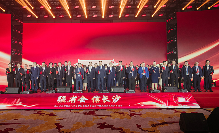 在黨的二十大勝利召開、長沙市工商聯成立七十周年、長沙“企業(yè)家日”到來之際,為深入學習貫徹黨的二十大精神和中央統(tǒng)戰(zhàn)工作會議精神,總結回顧市工商聯過去70載的工作成效以及全市民營經濟發(fā)展的歷史經驗,大力弘揚企業(yè)家精神,2022年11月1日,長沙市工商聯深入學習貫徹黨的二十大精神暨慶祝成立70周年大會在長沙隆重舉行。