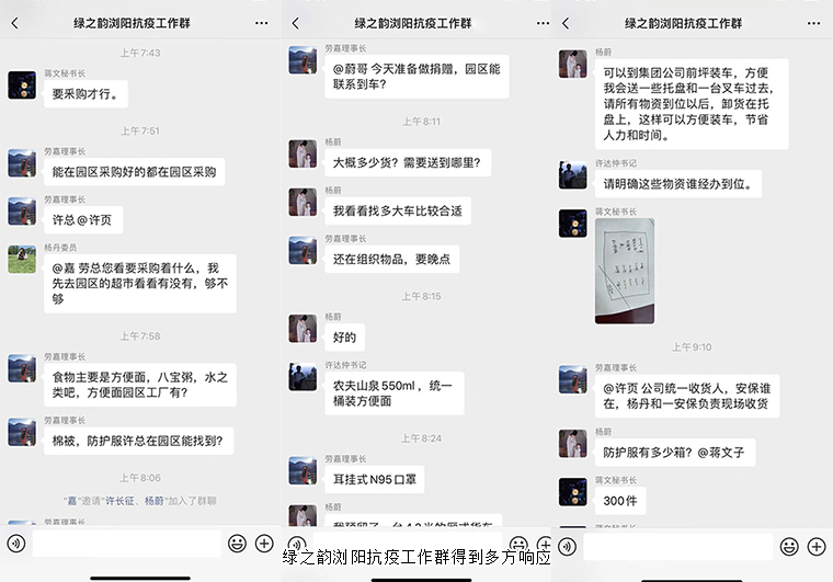 共克時艱,搭建抗疫“暖心橋”。在這場疫情大考中,綠之韻快速反應(yīng),積極作為,第一時間便成立安全防控小組并制定應(yīng)急預(yù)案,始終把員工健康安全放在第一位,全力做好人員管控、健康排查、防疫宣傳、環(huán)境消毒、物資儲備等工作。綠之韻集團(tuán)董事長胡國安,董事總裁、綠之韻公益基金會理事長勞嘉專門成立瀏陽抗擊疫情工作小組,親自指揮,聯(lián)動綠之韻集團(tuán)黨委、工會、公益基金會、團(tuán)委,緊急籌措物資。瀏陽市政協(xié)委員、綠之韻公益基金會秘書長蔣文積極作為,廣泛聯(lián)絡(luò)抗疫物資和志愿者行動。綠之韻集團(tuán)黨委副書記許達(dá)仲、黨委委員楊丹始終堅守在防疫一線,號召留守園區(qū)的黨員、企業(yè)員工作為愛心志愿者參與防疫幫扶工作,守望相助、共克時艱,匯成了同心抗疫的暖心洪流。