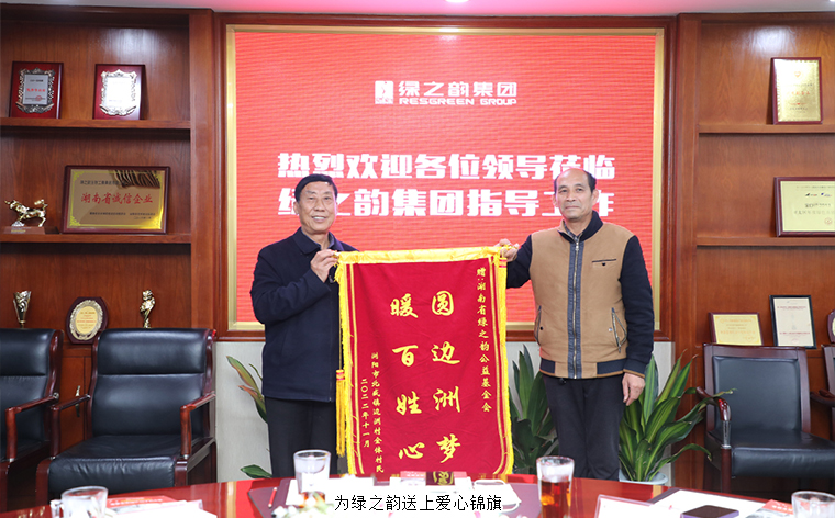 2022年11月23日,長沙市場監(jiān)督管理局駐瀏陽市北盛鎮(zhèn)邊洲村第一書記羅亞軍、邊洲村原村黨總支書記聶力武等一行蒞臨綠之韻集團(tuán),并送來愛心錦旗,表達(dá)對綠之韻支持北盛鎮(zhèn)邊洲村鄉(xiāng)村振興建設(shè)工作的感謝之情。綠之韻集團(tuán)董事、總裁勞嘉,工會主席兼辦公室行政總監(jiān)馮紅,黨委副書記許達(dá)仲,瀏陽市政協(xié)委員、綠之韻公益基金會秘書長蔣文等參加活動(dòng)。