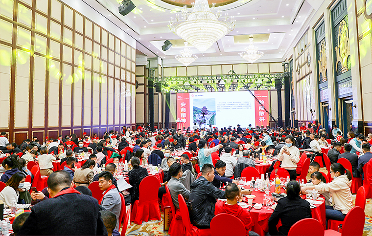 齊心同所愿,把酒敘鄉(xiāng)情。當(dāng)晚,還舉辦了2022長沙市安化商會年會。中共長沙市委統(tǒng)戰(zhàn)部副部長、市工商聯(lián)黨組書記何惠風(fēng),安化縣政協(xié)黨組書記、主席胡能華,長沙市工商聯(lián)副主席田桂元,安化縣人民政府副縣長瞿東江,縣政協(xié)黨組副書記、副主席廖小寒,安化縣政協(xié)副主席、縣工商聯(lián)主席劉暢術(shù),湖南安化經(jīng)濟開發(fā)區(qū)管理委員會主任胡盛云;羽毛球世界冠軍黃穗、羽毛球奧運冠軍田卿等領(lǐng)導(dǎo)、嘉賓出席大會。湖南省政協(xié)委員、湖南省慈善總會副會長、湖南長沙市光彩事業(yè)基金會理事長、綠之韻集團董事長胡國安與長沙市安化商會全體會員、安化各大商會代表、長沙各行業(yè)安化籍知名企業(yè)和精英人士近300人齊聚一堂,共迎未來發(fā)展新征程。