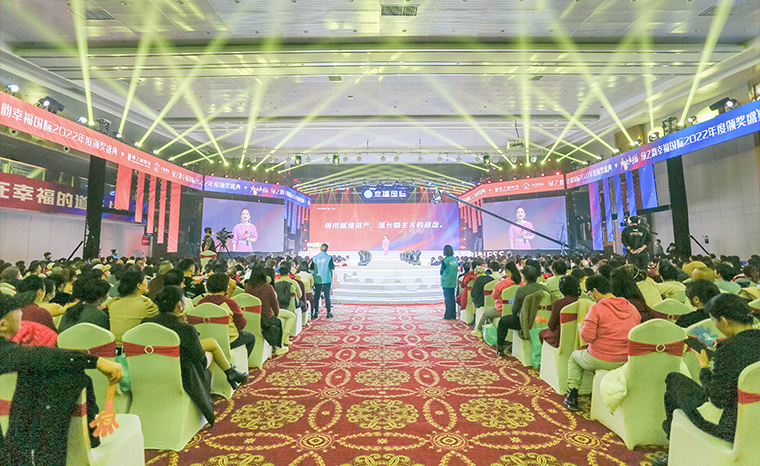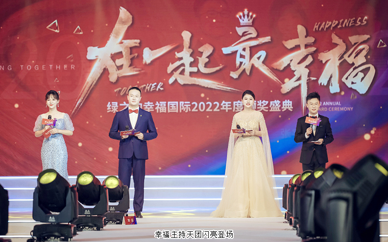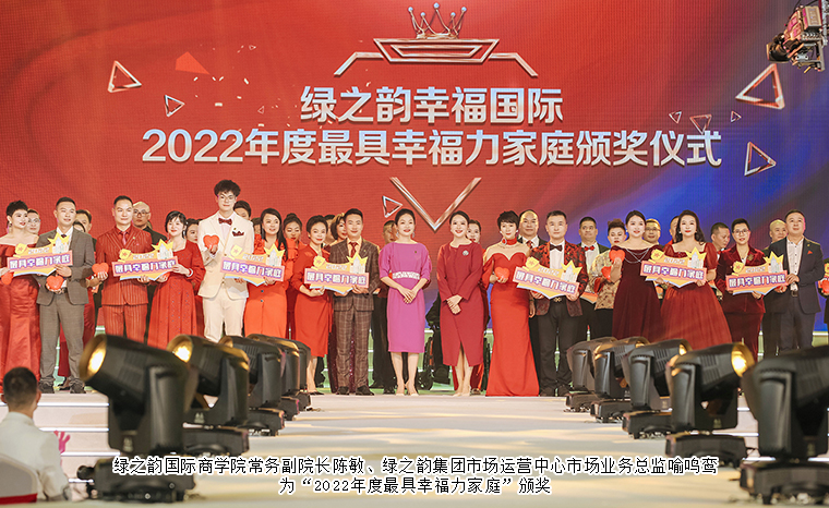 2023年1月11日晚,在一起·最幸福——綠之韻幸福國際2022年度頒獎盛典在集團(tuán)總部國際會議中心盛大舉行。綠之韻集團(tuán)董事長胡國安,董事、總裁勞嘉,副總裁胡均安,副總裁、幸福導(dǎo)師夏運(yùn)良及高管團(tuán)隊(duì),與來自全國各地的1000余名綠之韻家人匯聚一堂,共襄盛舉。大會全程通過PC、移動端在線互動視頻直播,線上近60000人次共同收看和分享了大會盛況。