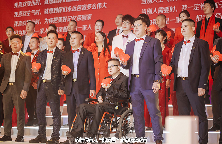 他們,披星戴月從不害怕,全力以赴從不猶疑,一路向前從不氣餒。因?yàn)樗麄冎?,家人的期盼是力量的源泉,家人的溫暖是最?jiān)強(qiáng)的依靠。綠之韻國際商學(xué)院常務(wù)副院長陳敏、綠之韻集團(tuán)市場運(yùn)營中心市場業(yè)務(wù)總監(jiān)喻鳴鸞為“2022年度最具幸福力家庭”頒獎,幸福代言人“姐夫團(tuán)”分享獲獎感言。