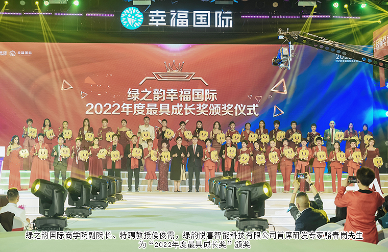 他們有過深夜里的迷茫、低谷時(shí)的彷徨,更有過收獲時(shí)的興奮與高光。他們有著不同的成長故事,卻經(jīng)歷著同樣的成長蛻變,他們用卓越的成績和堅(jiān)定的步伐告訴大家,奮斗的人生最精彩,成長的生命最喜悅。綠之韻國際商學(xué)院副院長、特聘教授侯俊霞,綠韻悅喜智能科技有限公司首席研發(fā)專家駱春崗為“2022年度最具成長獎”頒獎,幸福代言人石雷分享獲獎感言。