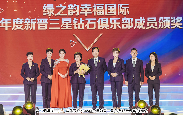 在幸福的道路上,有這樣一群堅(jiān)實(shí)的守護(hù)者,他們心懷熱愛,步履不停,用夢想融合新生,用榮耀成就巔峰,他們是為幸福奮斗的高階精英,他們是本次進(jìn)入鉆石俱樂部的最強(qiáng)王者。勇者無畏,破繭成蝶,迎來屬于他們的鉆石榮耀之旅。綠之韻集團(tuán)董事、總裁勞嘉,綠之韻集團(tuán)副總裁胡均安,綠之韻國際商學(xué)院執(zhí)行院長黎芋成,綠之韻國際商學(xué)院常務(wù)副院長陳敏,綠之韻國際商學(xué)院副院長、特聘教授侯俊霞分別為綠之韻幸福國際2022年度新晉一星、二星、三星鉆石俱樂部成員頒獎,獲獎?wù)哧悤詵|、蘇裕涵、林景云分享獲獎感言。
