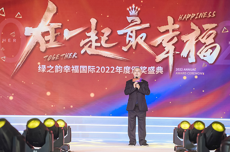 在全場熱烈的掌聲中,綠之韻集團(tuán)副總裁、幸福導(dǎo)師夏運(yùn)良作主題演講。他表示,不忘初心,三載前行,我們在牽掛與堅(jiān)強(qiáng)中走過艱難的三年疫情,到此刻終于在熱血與希望中迎來相聚的幸福時(shí)刻,所有等待都值得,所有經(jīng)歷都讓我們倍加珍惜這來之不易的幸福。沒有一個(gè)冬天不會過去,也沒有一個(gè)春天不會到來,希望所有的幸福代言人向陽而生,逆風(fēng)而上。只要我們在一起,就是最幸福的事。三年來,幸福國際出發(fā)時(shí)正處于行業(yè)的寒冬期,失去“天時(shí)”;緊接著爆發(fā)的疫情,讓我們失掉“地利”;唯一能支撐我們走到今天的只有“人和”。感恩在我們通往幸福道路上不斷給予支持的胡國安董事長、勞嘉總裁以及所有在背后為我們保駕護(hù)航的綠之韻同仁們;感恩每一位一起創(chuàng)造幸福的運(yùn)營團(tuán)隊(duì),感恩每一位發(fā)展委委員、特聘市場講師、市場核心骨干以及每一位幸福代言人。正因?yàn)橛心銈?,才讓不確定的2022年變得不遺憾,也堅(jiān)信“人和”這兩個(gè)字將成為綠之韻幸福國際長遠(yuǎn)發(fā)展的底氣。伴隨著打造品質(zhì)與品牌新三年的開啟,2023年,是綠之韻幸福國際生根、落地、結(jié)果的關(guān)鍵之年,我們要把產(chǎn)品做出效果,把服務(wù)做到極致,讓陪伴產(chǎn)生感覺,用同頻創(chuàng)造價(jià)值,締造未來更長期的發(fā)展愿景。只要我們在一起,絕對專注的走好我們選擇的同一條路,相信每一步都有方向,每一步都有希望,每一步都有未來。期待2023年火力全開,再攀高峰,為綠之韻集團(tuán)成立二十周年獻(xiàn)禮!