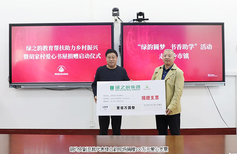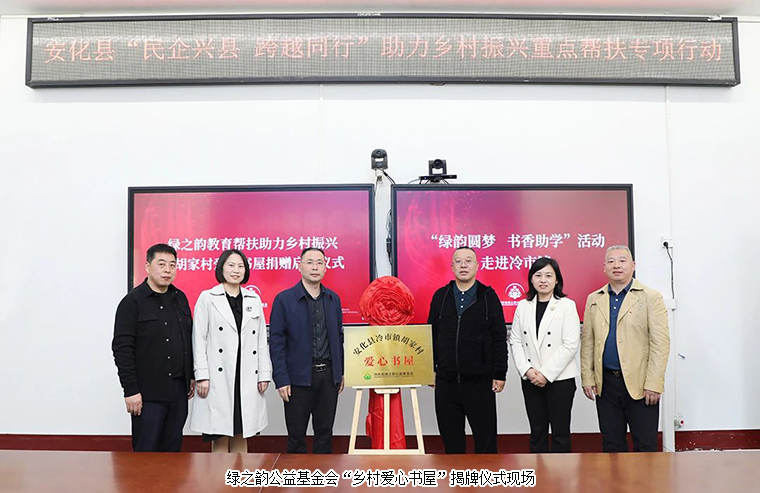 為積極響應湖南省“民企興縣 跨越同行”助力鄉(xiāng)村振興重點幫扶縣專項行動,2023年3月31日,綠之韻集團通過湖南省綠之韻公益基金會“書香助學項目”捐贈100萬元愛心款項,用于安化縣冷市鎮(zhèn)胡家村愛心書屋建設(shè)及在安化大橋?qū)W校設(shè)立“綠韻圓夢獎學金”,支持鄉(xiāng)村振興文化建設(shè)和教育事業(yè)發(fā)展。