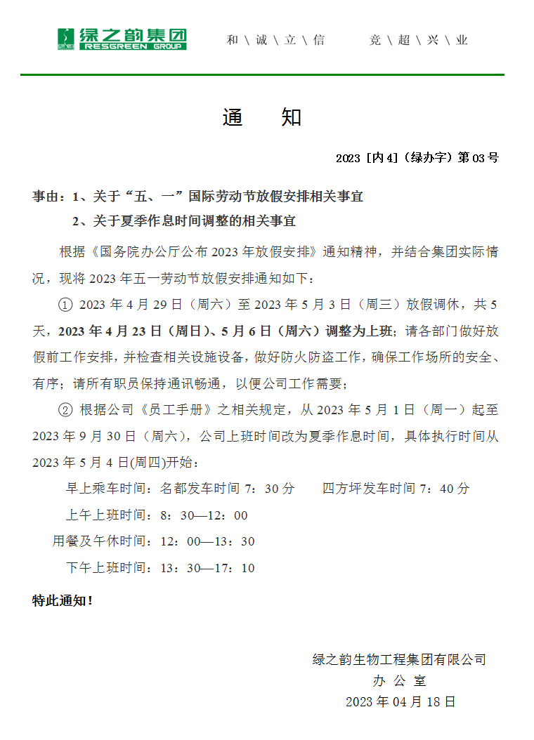 通 知 丨關(guān)于“五、一勞動節(jié)”放假安排和夏季作息時間調(diào)整的相關(guān)事宜