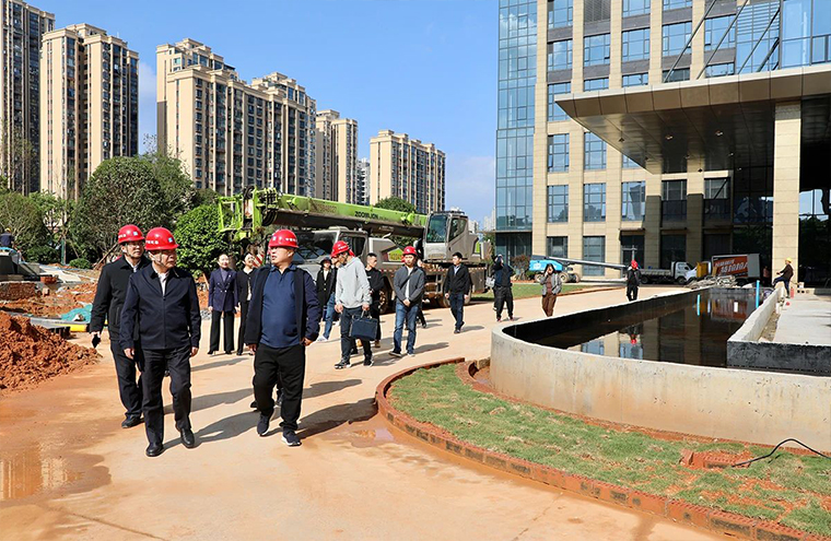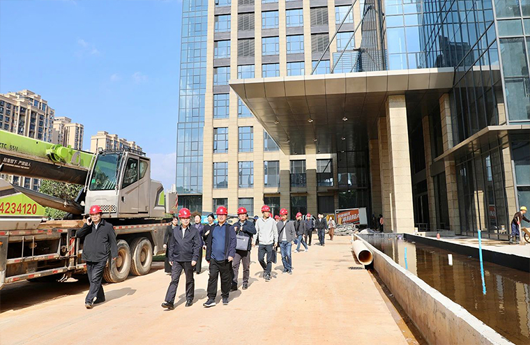 調(diào)研組一行在項(xiàng)目工作人員的引導(dǎo)下,查看了整個(gè)項(xiàng)目的施工進(jìn)度及作業(yè)環(huán)境,了解綠之韻中心項(xiàng)目建設(shè)安全生產(chǎn)、綠色施工、未來發(fā)展等情況。