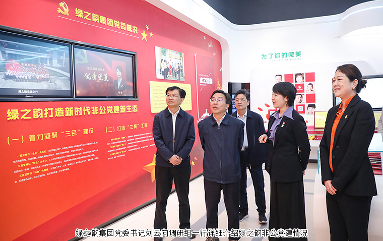 在黨建文化展示區(qū)域,綠之韻集團(tuán)黨委書(shū)記劉云向調(diào)研組一行詳細(xì)介紹綠之韻非公黨建情況。多年來(lái),集團(tuán)黨委堅(jiān)持構(gòu)建以集團(tuán)黨組織為核心,以集團(tuán)工會(huì)、公益基金會(huì)為主體,打造紅色基因塑造的新時(shí)代非公黨建新生態(tài),在全行業(yè)內(nèi)創(chuàng)建了第一家黨建文化教育基地,形成了具有綠之韻特色的非公黨建工作品牌。集團(tuán)黨委歷年來(lái)多次被各級(jí)黨組織授予“先進(jìn)基層黨組織”、“黨建示范點(diǎn)”、“標(biāo)桿引領(lǐng)先進(jìn)基層黨組織”等榮譽(yù)稱號(hào)。