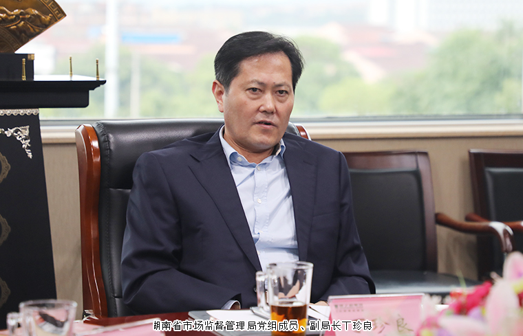 2023年5月23日,湖南省市場監(jiān)督管理局黨組成員、副局長丁珍良,省市場監(jiān)管局反壟斷局一級調(diào)研員楊序清、省巿場監(jiān)管局反壟斷局三級調(diào)研員肖向陽一行蒞臨綠之韻調(diào)研。湖南省政協(xié)委員、湖南省市場監(jiān)督管理局特邀監(jiān)督員、綠之韻集團(tuán)董事總裁勞嘉,副總裁胡均安,總裁助理蔣文等公司領(lǐng)導(dǎo)陪同。
