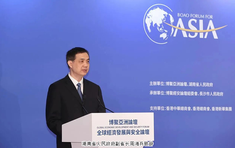 香港特別行政區(qū)行政長(zhǎng)官李家超在致辭中強(qiáng)調(diào)了人類命運(yùn)共同體理念,全球發(fā)展倡議和全球安全倡議,肯定了香港特區(qū)和博鰲經(jīng)安論壇對(duì)發(fā)展與安全這兩個(gè)全球關(guān)注的議題的高度重視。李家超指出,香港作為國(guó)家的一部分,地球村的一分子,必須不斷發(fā)揮“一國(guó)兩制”下背靠祖國(guó)、聯(lián)通世界的得天獨(dú)厚優(yōu)勢(shì),走好國(guó)際化路線,全力拼經(jīng)濟(jì)、拼發(fā)展、拼競(jìng)爭(zhēng)力,為建設(shè)美好香港、為共建人類命運(yùn)共同體作出貢獻(xiàn)。湖南省人民政府副省長(zhǎng)周海兵向與會(huì)嘉賓介紹了近年來(lái)湖南省經(jīng)濟(jì)社會(huì)事業(yè)高質(zhì)量發(fā)展所取得的成就,他指出,博鰲亞洲論壇與湖南省將于今年10月共同舉辦博鰲經(jīng)安論壇第二屆大會(huì),為各國(guó)應(yīng)對(duì)經(jīng)濟(jì)發(fā)展與安全新挑戰(zhàn)、實(shí)現(xiàn)可持續(xù)發(fā)展繼續(xù)提供“博鰲方案”、貢獻(xiàn)“湖南力量”。周海兵表示,第二屆大會(huì)必將是一場(chǎng)思想的盛宴、合作的盛會(huì),期待博鰲亞洲論壇與湖南省以舉辦第二屆經(jīng)安大會(huì)為契機(jī),精誠(chéng)合作、攜手共贏,進(jìn)一步深化彼此在各領(lǐng)域的務(wù)實(shí)合作,全方位推動(dòng)高質(zhì)量發(fā)展。