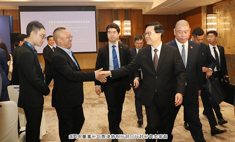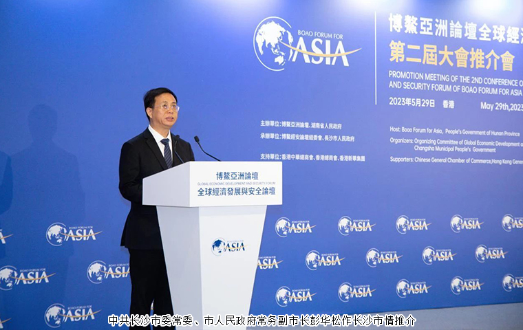 聚焦世界期待,推開(kāi)交流窗口。5月29日上午,博鰲亞洲論壇全球經(jīng)濟(jì)發(fā)展與安全論壇第二屆大會(huì)推介會(huì)在香港嘉里酒店舉行。本次活動(dòng)由博鰲亞洲論壇、湖南省人民政府共同主辦,博鰲經(jīng)安論壇組委會(huì)、長(zhǎng)沙市人民政府共同承辦,香港中華總商會(huì)、香港總商會(huì)、香港新華集團(tuán)提供支持。博鰲亞洲論壇秘書(shū)長(zhǎng)李保東,香港特別行政區(qū)行政長(zhǎng)官李家超,湖南省人民政府副省長(zhǎng)周海兵,香港中華總商會(huì)會(huì)長(zhǎng)蔡冠深,中共長(zhǎng)沙市委常委、市人民政府常務(wù)副市長(zhǎng)彭華松,博鰲經(jīng)安論壇大會(huì)主席曾偉雄出席推介會(huì)并致辭。