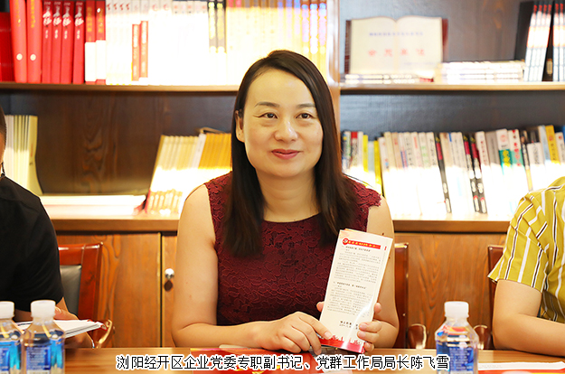 瀏陽經開區(qū)企業(yè)黨委專職副書記、黨群工作局局長陳飛雪詳細介紹了園區(qū)的企業(yè)類型,并就非公企業(yè)如何開展黨建工作進行了深入的交流。她表示,黨建工作的成果與企業(yè)的經濟效益是成正比的,緊抓黨建的做法對企業(yè)的發(fā)展能起到很好的促進作用。非公企業(yè)在黨建工作的開展中要充分發(fā)揮黨組織的政治引領作用,以黨建帶動群建、工建、婦建、團建等全盤組織建設;要堅持“以人為本”的理念,讓員工在企業(yè)得到歸屬感和幸福感,精神上的關愛往往比物質上的獎勵更能留住人才。她希望,今后經開區(qū)與望城區(qū)能多多加強黨建方面的溝通與交流,相互學習、共同積累優(yōu)秀的黨建工作經驗,讓黨建成為推動企業(yè)發(fā)展的動力源泉,為省市經濟社會發(fā)展作出更大貢獻!