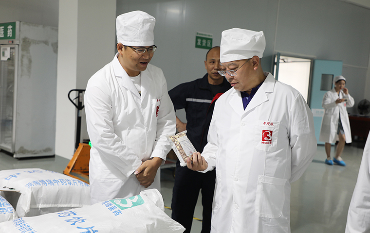 隨后,考察團相繼走訪參觀了銀鴻農(nóng)業(yè)有限公司及經(jīng)開區(qū)鵲坪片區(qū)。通過實地察看、聽取介紹等方式,詳細了解了農(nóng)業(yè)生產(chǎn)經(jīng)營情況及黃精產(chǎn)業(yè)新區(qū)開發(fā)建設情況,并圍繞如何培育壯大中醫(yī)藥產(chǎn)業(yè)與企業(yè)負責人進行交流,探討黃精產(chǎn)品未來加工方向及加工技術的突破。在最后一站,考察組一行來到博瑞中藥飲片有限公司,分別查看了公司中藥材原料倉庫、中藥飲片生產(chǎn)車間、成品倉庫等功能區(qū),聽取了公司相關負責人就中藥材飲片生產(chǎn)工藝流程的詳細介紹。據(jù)了解,湖南博瑞中藥飲片有限公司是益陽市僅有的2家中藥飲片生產(chǎn)加工企業(yè)之一。公司于2017年取得GMP證書,備案品種300多個,除毒性飲片,其他常用品種均有,現(xiàn)與湖南省中醫(yī)藥研究院合作開發(fā)黃精免疫力產(chǎn)品,黃精精深加工車間也正在建設中。