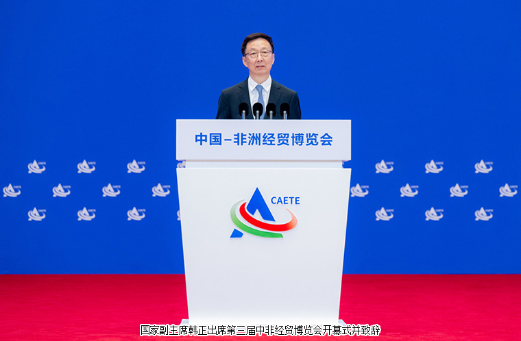 國(guó)家副主席韓正表示,設(shè)立中國(guó)-非洲經(jīng)貿(mào)博覽會(huì),是習(xí)近平主席親自批準(zhǔn)的重大對(duì)非合作舉措。2013年3月,習(xí)主席出訪非洲時(shí),首次提出真實(shí)親誠(chéng)對(duì)非政策理念和正確義利觀。十年來(lái),無(wú)論國(guó)際風(fēng)云如何變幻,中非始終真誠(chéng)友好、團(tuán)結(jié)合作,高層交往更加密切,合作規(guī)模不斷擴(kuò)大,合作領(lǐng)域持續(xù)拓展,結(jié)成休戚與共的命運(yùn)共同體和合作共贏的利益共同體,取得了豐碩成果,造福了中非廣大人民。他指出,當(dāng)今世界,多重挑戰(zhàn)和危機(jī)交織疊加,發(fā)展鴻溝不斷拉大。中方愿以中國(guó)式現(xiàn)代化和中國(guó)高質(zhì)量發(fā)展為非方提供新機(jī)遇,推動(dòng)中非務(wù)實(shí)合作走深走實(shí)。中方堅(jiān)定支持非洲走獨(dú)立自主的發(fā)展道路,將深入推進(jìn)中非共建“一帶一路”合作,同非洲國(guó)家持續(xù)深化戰(zhàn)略對(duì)接、加強(qiáng)產(chǎn)業(yè)鏈供應(yīng)鏈合作、著力提升聯(lián)通水平、共同聚焦可持續(xù)發(fā)展、堅(jiān)定推進(jìn)開(kāi)放發(fā)展,推動(dòng)構(gòu)建更加緊密的中非命運(yùn)共同體。他表示,中非合作不斷向全方位、多層次、高質(zhì)量發(fā)展,在南南合作和國(guó)際對(duì)非合作中發(fā)揮著重要引領(lǐng)作用,為構(gòu)建新型國(guó)際關(guān)系樹(shù)立了典范。本屆博覽會(huì)將為中非雙方打造對(duì)接交流、探討合作的良好平臺(tái)。歡迎中非各界積極參與博覽會(huì)活動(dòng),共同譜寫(xiě)中非經(jīng)貿(mào)合作高質(zhì)量發(fā)展新篇章,共享新時(shí)代繁榮發(fā)展新未來(lái)。