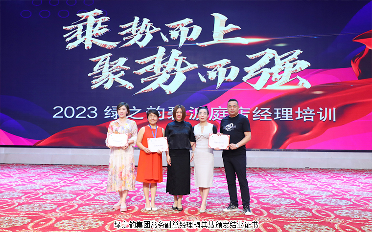 培訓(xùn)臨近結(jié)束,綠之韻集團(tuán)常務(wù)副總經(jīng)理梅其慧為綠之韻碧波庭的家人們頒發(fā)培訓(xùn)結(jié)業(yè)證書,并代表集團(tuán)公司向家人們致以誠摯的問候,感謝綠之韻碧波庭事業(yè)伙伴一直以來對綠之韻的信任與支持。今年,是綠之韻與碧波庭牽手合作的第 13 個(gè)年頭,雙方互助共贏,取得了經(jīng)濟(jì)效益和品牌價(jià)值的“雙豐收”。未來,集團(tuán)公司將繼續(xù)給予各位市場伙伴全方位的支持與幫助,努力建設(shè)一個(gè)更加穩(wěn)定、更加便捷、更加優(yōu)質(zhì)的健康事業(yè)平臺(tái),為市場發(fā)展保駕護(hù)航。希望每一位綠之韻人都能夠秉承初心,再接再厲,開創(chuàng)屬于自己的事業(yè)新篇章!