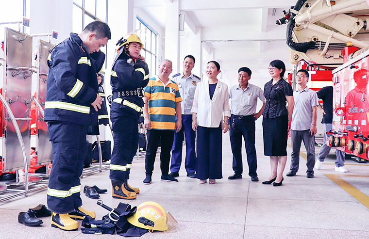 綠之韻集團黨委書記劉云向消防救援站一直以來在維護(hù)群眾生命財產(chǎn)安全和社會和諧穩(wěn)定方面做出的貢獻(xiàn)表達(dá)了感謝。金陽消防救援站站長何暉帶領(lǐng)大家實地參觀了器材裝備庫、體能訓(xùn)練館、活動室、會議廳、宿舍等。目之所及干凈整潔,消防官兵精神飽滿,何站長從火災(zāi)防控、執(zhí)勤備戰(zhàn)、消防裝備等方面進(jìn)行簡要解說?!跋肴罕娭?,急群眾之所急,我們將始終戰(zhàn)斗在防火滅火、救災(zāi)搶險第一線,為保障群眾生命安全和財產(chǎn)安全保駕護(hù)航?!辩H鏘有力的誓言,一往無前的斗志,將軍人愛崗敬業(yè)、擔(dān)當(dāng)奉獻(xiàn)的本色展現(xiàn)得淋漓盡致。隨后,消防指戰(zhàn)員們?yōu)榇蠹規(guī)砹艘粓鱿乐R演練,從救援工具到火災(zāi)事故預(yù)防,從安全隱患排查到應(yīng)急搶險救援,演練別開生面,讓人過目不忘。