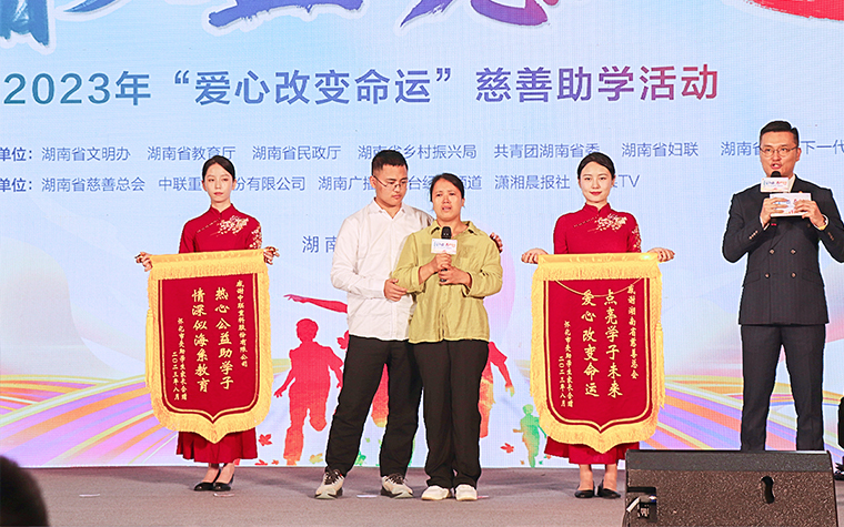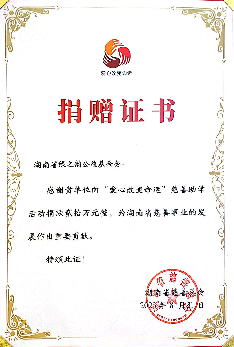 涓涓愛心匯流成河,點點星光照亮未來。愛心企業(yè)、愛心單位線上線下齊發(fā)力。今年7月,綠之韻公益基金會攜手湖南省慈善總會、芒果公益開啟“愛心改變命運”助學季,上線“2023愛心改變命運”網(wǎng)絡(luò)籌款募捐項目,向社會籌措助學資金,資助湖南省內(nèi)勵志學子圓夢大學。此次活動現(xiàn)場,勞嘉理事長代表綠之韻公益基金會向“愛心改變命運”項目捐資20萬,為圓勵志學子大學夢貢獻一份力量。