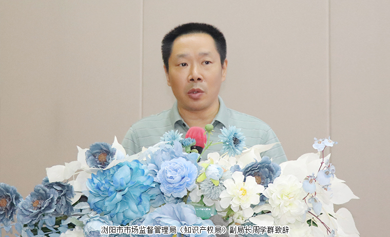 活動開始前,到訪嘉賓一行參觀了綠之韻集團國際會議中心展廳。勞嘉總裁就集團的發(fā)展歷程、非公黨建、技術創(chuàng)新、產(chǎn)品生產(chǎn)、知識產(chǎn)權、公益慈善等方面的工作情況作了詳細介紹。活動伊始,瀏陽市市場監(jiān)督管理局(知識產(chǎn)權局)副局長周學群致辭。他表示,在這個各行各業(yè)急需恢復生產(chǎn)動力和創(chuàng)新活力的關鍵時期,感謝各位領導及協(xié)會專家們來瀏陽指導知識產(chǎn)權工作,感謝大家對瀏陽企業(yè)的關心關愛。瀏陽作為湖南重要的縣級市,在市局的關心支持下,全面落實了三高四新的戰(zhàn)略定位和歷史使命,大力實施了強省會的戰(zhàn)略,知識產(chǎn)權工作取得了一定的成效。未來將繼續(xù)加強重點商標品牌的培育,大力引導企業(yè)增強品牌意識,加大宣傳的舉措,擦亮瀏陽品牌這塊牌子。
