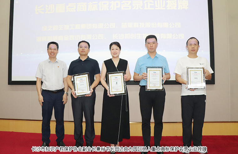 隨后,長沙市知識產(chǎn)權保護協(xié)會副會長兼秘書長田達良為園區(qū)納入重點商標保護名錄企業(yè)授牌。綠之韻集團申報的“綠之韻”商標成功入選2023年首批長沙重點商標保護名錄。據(jù)了解,此次重點保護商標評選有著非常嚴苛的標準,通過行業(yè)協(xié)會、專家組評審、商保委審議等層層篩選,要求品牌享有較高知名度,具有一定市場影響力、商標價值較高等,旨在為品牌建設工作提供有力保障。