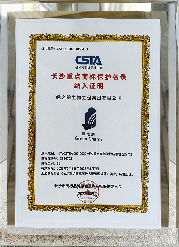 “此次入選,既是對綠之韻集團的高度認可和勉勵,也為后續(xù)綠之韻的品牌建設提供了動力和保障。”勞嘉總裁表示,綠之韻集團經(jīng)過二十年長足發(fā)展,集團現(xiàn)擁有134枚商標,其中“綠之韻”為4枚省著名商標、共申請116項專利,專利技術大部分已運用于研發(fā)生產(chǎn)及保護過程。2019年通過知識產(chǎn)權貫標認證,為長沙市商標密集型企業(yè),獲得2018、2019省知識產(chǎn)權戰(zhàn)略項目補貼。2022年被長沙市公安局、市知識產(chǎn)權局授予“保護知識產(chǎn)權駐企業(yè)工作站”。未來,綠之韻將一如既往的重視商標和專利等知識產(chǎn)權保護體系建設,扎實推動各項知識產(chǎn)權的設計運用和保護管理工作,以提升企業(yè)軟實力與綜合競爭力,推動企業(yè)創(chuàng)新能力建設,為長沙社會經(jīng)濟高質量發(fā)展做出更大的貢獻。