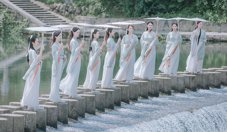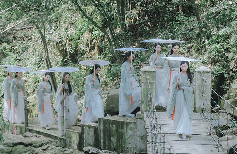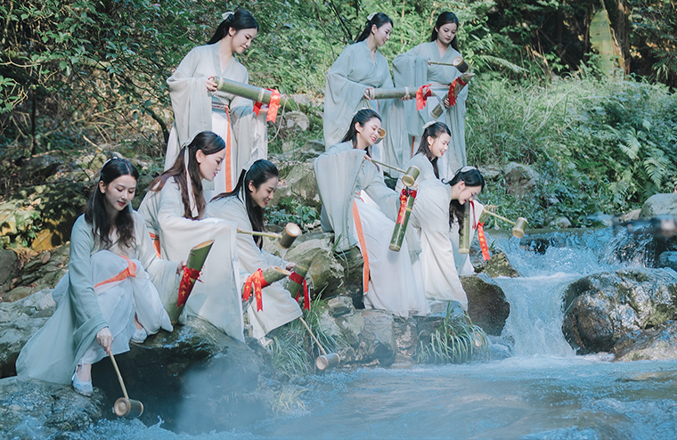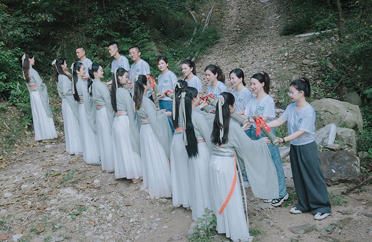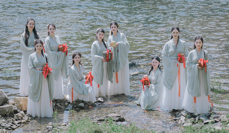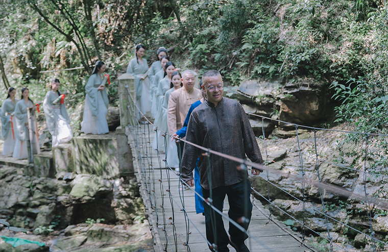 胡國安董事長帶領(lǐng)管理團隊及9位綠韻仙子款款而行、踏水而來