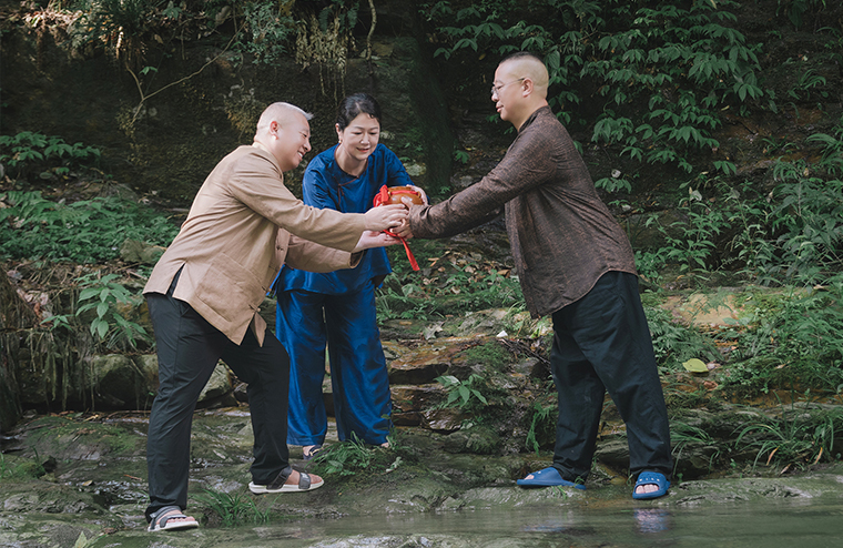 將第一壇小九溪源頭之水傳遞于勞嘉總裁、胡均安常務(wù)副總裁