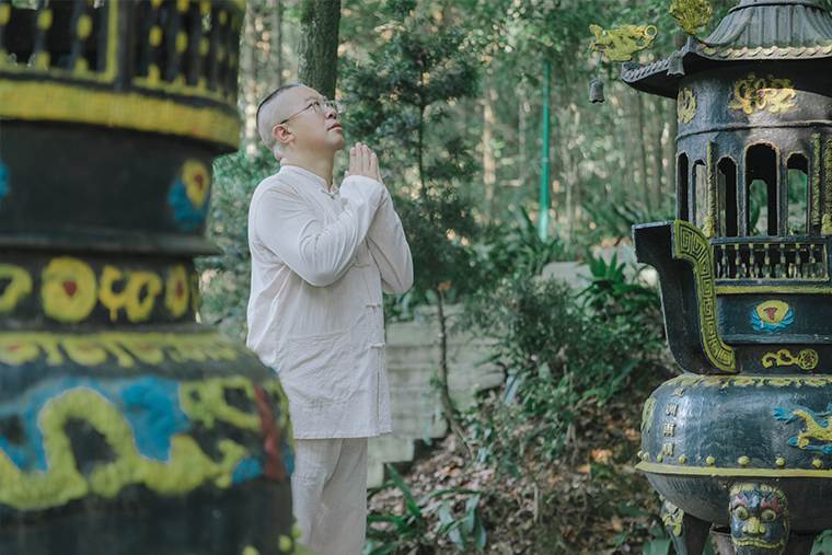 勞嘉總裁取紅綢系于古樹,真誠祈福