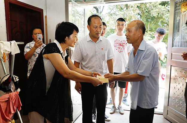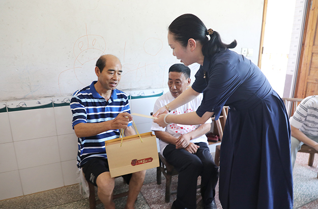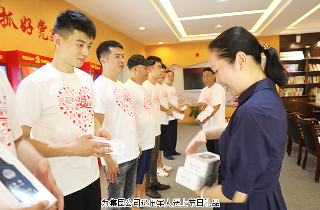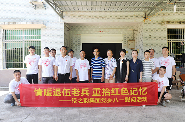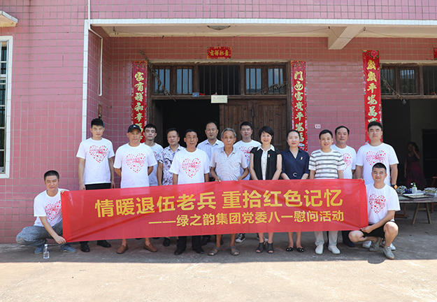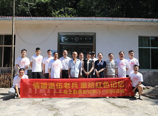 2019年7月31日,綠之韻集團黨委開展了“八一”走訪慰問退伍老兵活動。綠之韻集團黨委書記劉云、副總經理夏運良、工會主席兼集團辦公室行政總監(jiān)馮紅、黨委副書記許達仲帶領著就職于集團的十余名退伍軍人前往洞陽鎮(zhèn)東園村,向退伍老兵送上慰問金和濃濃的節(jié)日祝福。