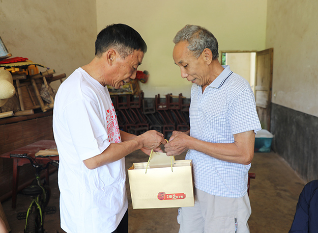 來到位于洞陽鎮(zhèn)東園村的老兵家中,劉云書記一行與老兵們親切交談,詳細了解他們的生活、身體狀況,聆聽他們回憶入伍時的崢嶸歲月,向他們致以節(jié)日的祝福和崇高的敬意,對他們?yōu)閲医洕⑸鐣l(fā)展和地方建設作出的巨大貢獻表示誠摯感謝。綠之韻集團工會主席兼集團辦公室行政總監(jiān)馮紅、黨委副書記許達仲向老兵們送上慰問金、營養(yǎng)品和日用品。