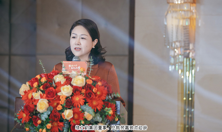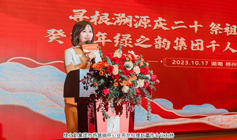 歲月不居,時節(jié)如流,廿念同心,共耀美好。10月17日下午6點半,癸卯年綠之韻集團千人祭祀舜帝典禮歡迎晚宴正式啟幕。傍晚時分,綠之韻集團董事長胡國安、董事總裁勞嘉、常務(wù)副總裁胡均安攜公司高管團隊、合作伙伴及精英代表們陸續(xù)抵達晚宴現(xiàn)場,大家紛紛在互動區(qū)合影,留下攜手共進的笑顏與向新前行的信念。晚宴伊始,綠之韻集團董事、總裁勞嘉致歡迎辭。她首先代表集團公司對各位領(lǐng)導(dǎo)、嘉賓和綠之韻家人們的到來表示熱烈的歡迎和誠摯的問候。在致辭中,她向大家介紹了20周年公司舉辦的系列活動,今年5月,3000名事業(yè)伙伴集結(jié)人文地標(biāo)橘子洲,共同為愛奔跑;緊接著,開展了20周年歷程展、尋根溯源取水儀式、出品了20周年《綠之韻賦》和主題曲,推出了20周年紀(jì)念版產(chǎn)品禮盒……這每一場品牌文化活動,每一個創(chuàng)新突破的背后,都傳遞著“回歸初心、厚植文化、堅守匠心”理念和情懷。她衷心感謝每一位事業(yè)伙伴和家人,感謝大家的選擇、相信、努力和堅持,讓綠之韻這個名字,熠熠生輝。青春氣貫長虹,20歲的綠之韻如日東升、風(fēng)華正茂。她希望,每一個綠之韻人都能以全新的姿態(tài)去迎接未來屬于我們共同的30年、40年、50年……“共建百年企業(yè),共筑世界名牌”。