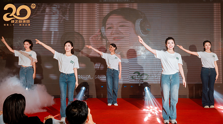 隨后,一段綠之韻集團20周年紀(jì)念曲《愿世間所有的美好如約而至》現(xiàn)代舞表演為晚宴帶來難忘瞬間,綠之韻舞蹈演員穿著有民族特色的服飾,以現(xiàn)代舞穿插手語舞的形式,展現(xiàn)了紀(jì)念曲的優(yōu)美韻律和柔美風(fēng)情。悠揚的歌聲,飽含深情的歌詞,將無懼歲月,把握當(dāng)下,勇敢追逐夢想的綠之韻精神娓娓道來,同時也唱出了所有綠之韻人堅持活出真我,做更好自己的初心。