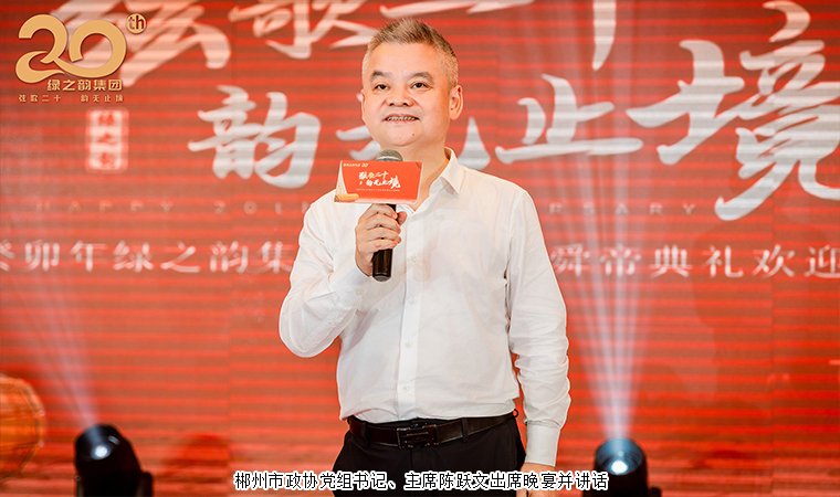 山水畫卷郴州相見,郴州遇見一生眷戀。晚宴尾聲,郴州市政協(xié)黨組書記、主席陳躍文講話。他表示非常高興今天能和綠之韻的精英們相聚在郴州,他介紹,郴州有非常優(yōu)越的區(qū)位優(yōu)勢;郴州有著非常豐富的礦產(chǎn)資源;郴州有非常好的旅游景點,郴州東江湖,人間天上一湖水,萬千景象在其中。他歡迎在場所有企業(yè)家到郴州觀光旅游,投資興業(yè)。今年綠之韻迎來了二十周年,他堅信有在座所有人的努力,綠之韻一定能夠從一個勝利走向另一個勝利,從一個輝煌走向另一個輝煌,他期待和大家一起見證綠之韻的30年、40年、50年、100年。