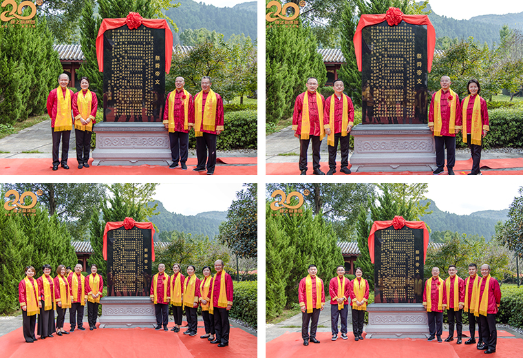 頌畢祭文,胡國安恭焚帛書。裊裊青煙,輕揚而上,告慰始祖英靈。隨后,胡國安董事長帶領(lǐng)主祭團成員進入正殿,向中華民族始祖舜帝行謁陵鞠躬禮、敬香禮并恭請舜帝銅雕像。鳴炮,奏樂,祭典圓滿告成。緊隨主祭團,各代表團圓滿完成了祭舜九大環(huán)節(jié)。最后,主祭團嘉賓,經(jīng)舜碑亭到達碑林妃殿祭文碑前,在中國商業(yè)文化研究會、湘商文化促進會會長伍繼延的主持下,在舜帝陵碑林園舉行了祭文碑揭碑儀式。