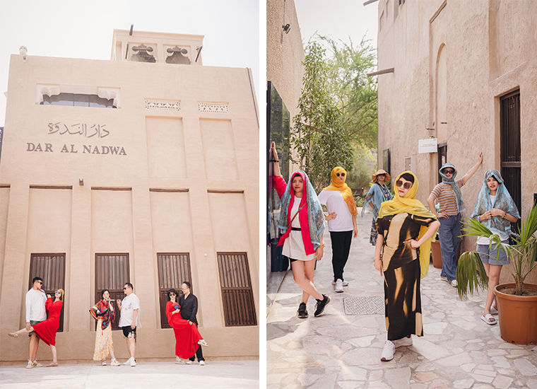 白天的迪拜紙醉金迷。擁有近100年歷史的黃金市集是迪拜繁忙的傳統(tǒng)市集之一,市集內(nèi)窄長的小巷如迷宮般交疊,兩旁的櫥窗陳列著各樣黃金珠寶,琳瑯滿目間頗有異域風情。伊朗小鎮(zhèn)是迪拜最古老的遺址之一,是海灣阿拉伯沿岸僅存的風塔建筑群。綠之韻家人們留戀徜徉于小鎮(zhèn),成為了小鎮(zhèn)一道亮麗的風景線。