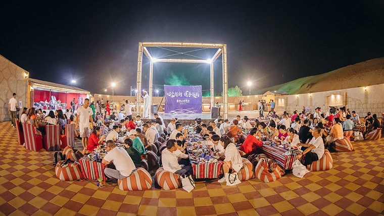 夜幕悄然降臨,在具有阿拉伯獨特風情的沙漠營地,開啟了綠之韻人專屬的特色風情晚宴,欣賞獨特的阿拉伯音樂和肚皮舞表演,穿著阿拉伯民族服飾拍照,品嘗阿拉伯特色的食物,繪制阿拉伯民族手繪,收獲生日驚喜……仰望漫天星空,享受全身心的放松與自我。