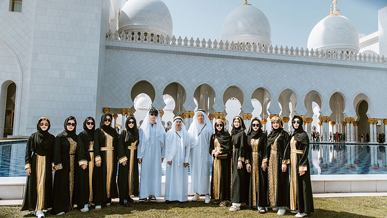在阿布扎比,謝赫扎耶德清真寺就是阿拉伯人虔誠信仰與物質繁榮的完美結合。潔白無瑕的外觀、五彩奪目的內(nèi)飾,恢弘肅穆,莊嚴圣潔。聽著清真寺傳來的禱告聲,邂逅穿著傳統(tǒng)長袍的阿拉伯人,它的華美和細膩,讓綠之韻家人們感覺仿佛走入了一個夢境。