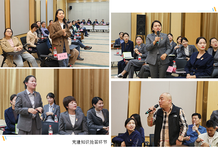 在接下來的黨建知識問答環(huán)節(jié),長沙市市場監(jiān)督管理局機關(guān)第五黨支部與綠之韻集團黨委的黨員代表分成四個小組進行PK。雙方黨員代表圍繞中國共產(chǎn)黨的發(fā)展歷史妙語連珠,機智問答,現(xiàn)場氛圍濃厚。四支隊伍經(jīng)過多輪搶答,最終綠之韻集團黨委代表的第三小組與長沙市市場監(jiān)督管理局代表的第一小組脫穎而出獲得一等獎。