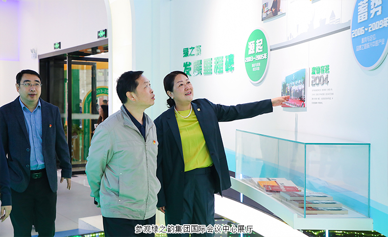 領(lǐng)導一行先后參觀了綠之韻集團國際會議中心展廳、黨建文化教育基地,與勞嘉總裁圍繞綠之韻集團的市場布局、產(chǎn)品研發(fā)生產(chǎn)、文化品牌建設(shè)、公益慈善活動及非公黨建工作等開展情況展開深入交流。領(lǐng)導一行肯定了綠之韻集團積極履行社會責任和嚴格把關(guān)產(chǎn)品生產(chǎn)等工作方面取得的顯著成效,對綠之韻非公黨建工作的開展給與高度評價。